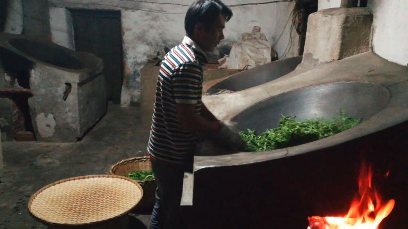 During our expedition in 2018, we were exploring Mengku 勐库 county in Lincang prefecture, which is one of the major puer tea producing area in Yunnan province. Nanmei village 南美村 is situated in the vicinity of Lingcang city and 20km away from famous Bingdao puer tea mountain. The connection to this place was paved by many obstructions, so we had to hire local transport to get there. Nanmei village seems to be a touristic destination which is obvious from the developed luxurious bungalow style accommodation and culture centre. Our aim was to find some good old tea trees and producer of puer teas. And we have found one. Mrs Li Fudong do not speak much, but his tea is speaking for him. The profound art of his calm panfriying of tea leaves gives the tea calm profoundness. As it would be the essence of his life. The tea is nicely round and has the bark&roots notes. Its liquer has translucent dark color and it is quite unique among shu puers.